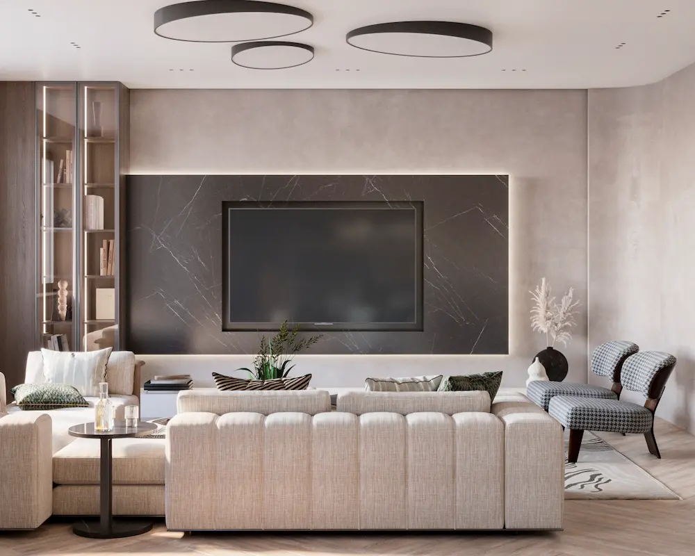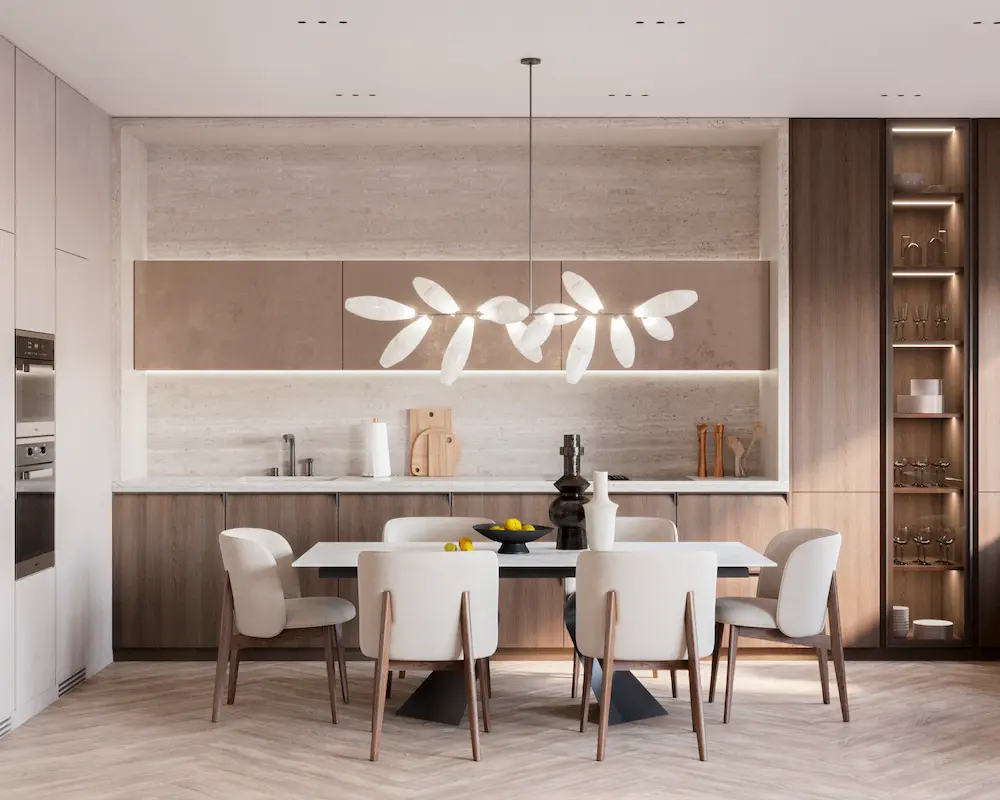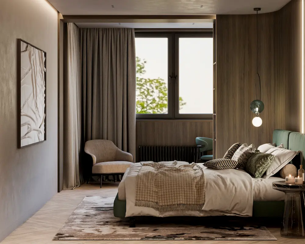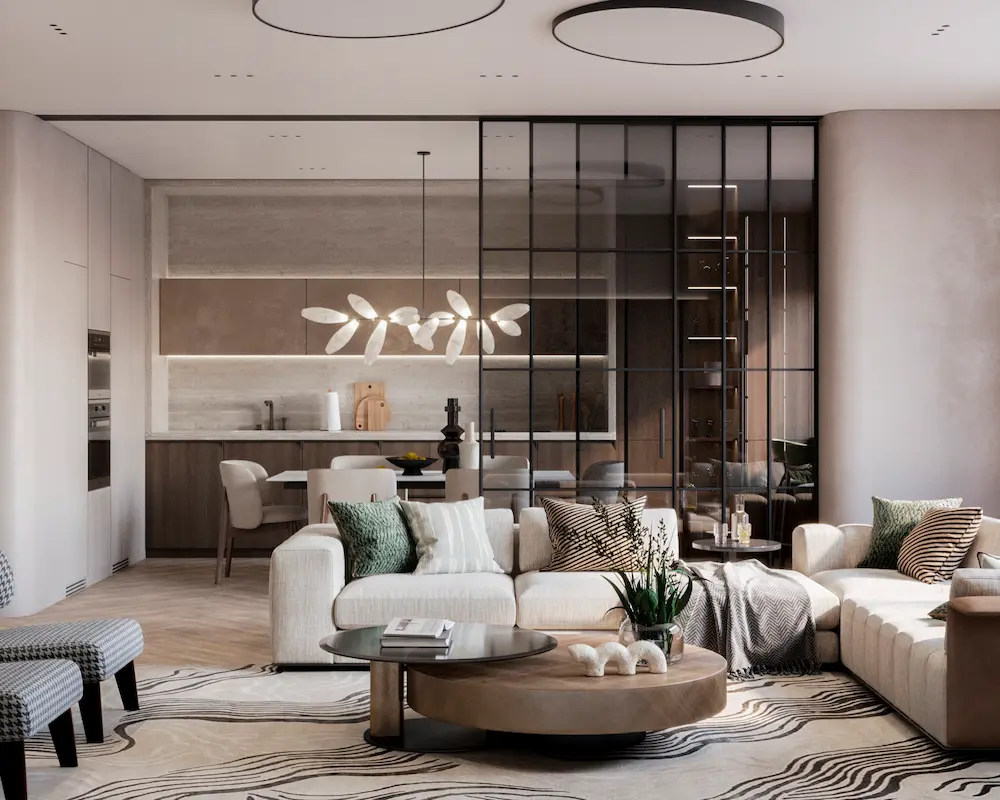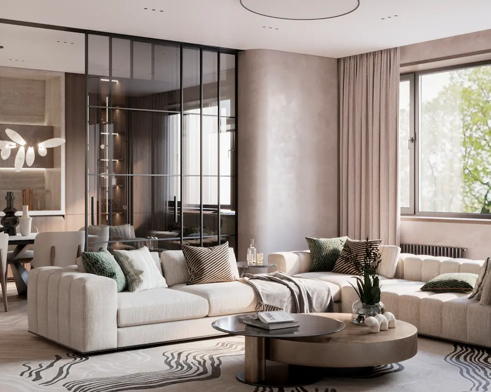 Проект квартиры в доме на набережной Оки разрабатывался для семьи из трех человек. Теплая цветовая гамма, обогащенная природными оттенками, легли в основу концепции интерьера. Натуральные материалы играют здесь первостепенную роль. Дерево, камень, лен, хлопок, шерсть – все они привносят в дом тепло и уют, создавая ощущение близости к природе.